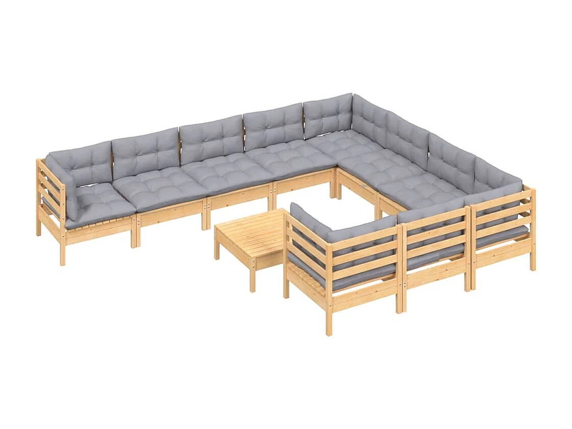 Salon de jardin 11 pièces avec coussins gris bois de pin