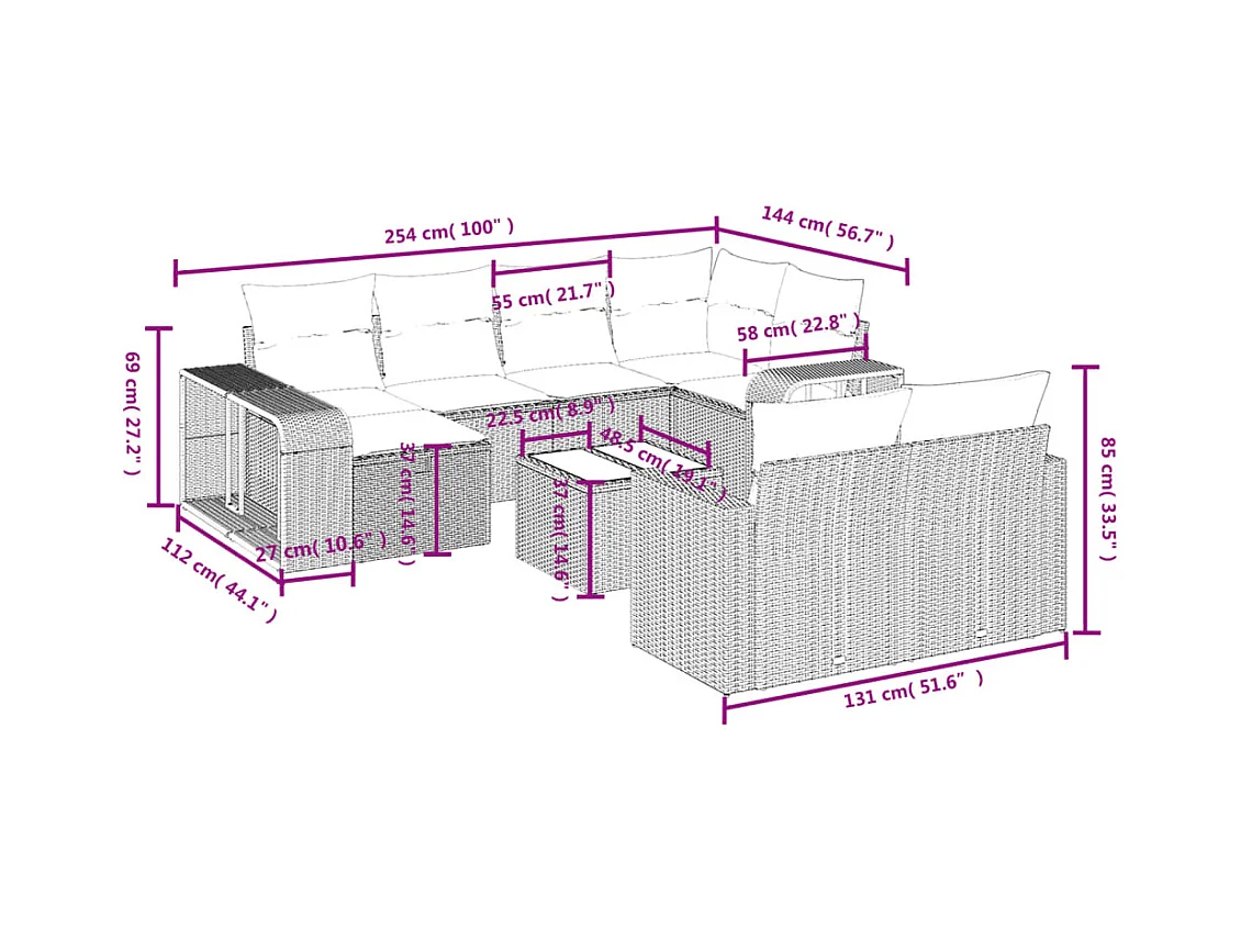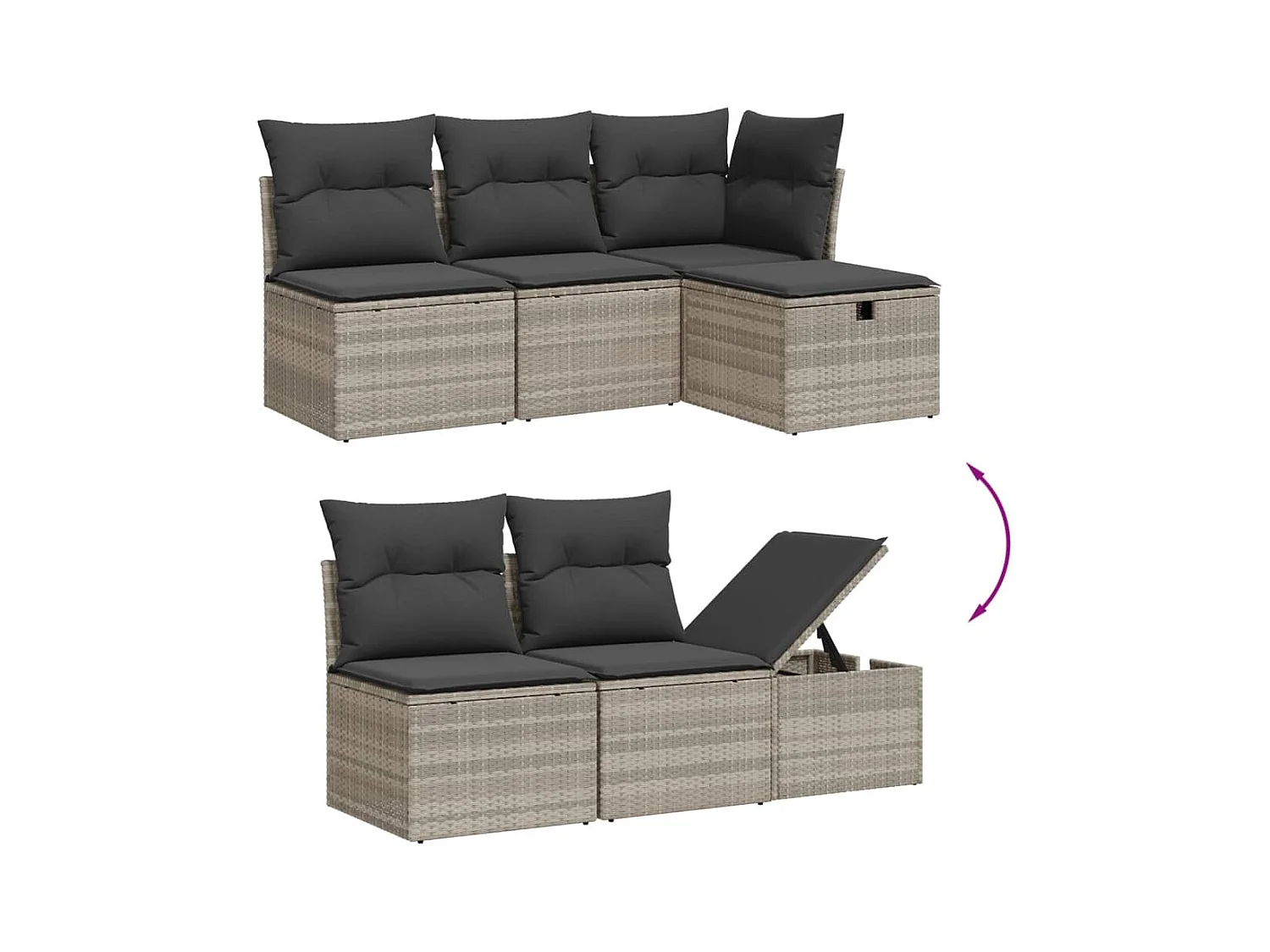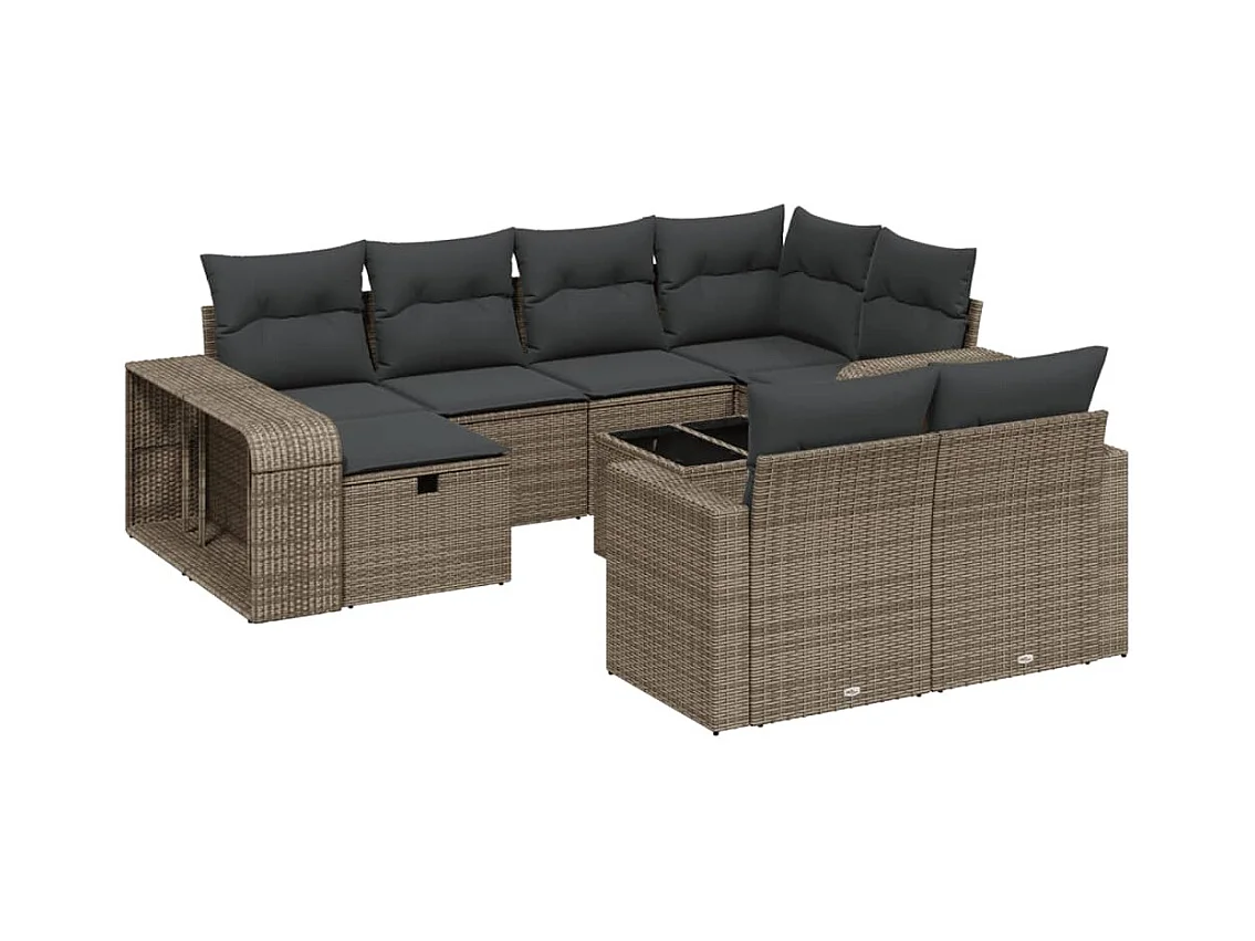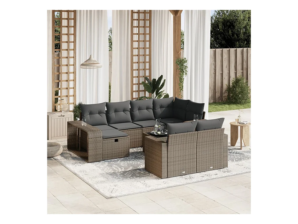 Salon de jardin 11 pièces avec coussins gris résine tressée