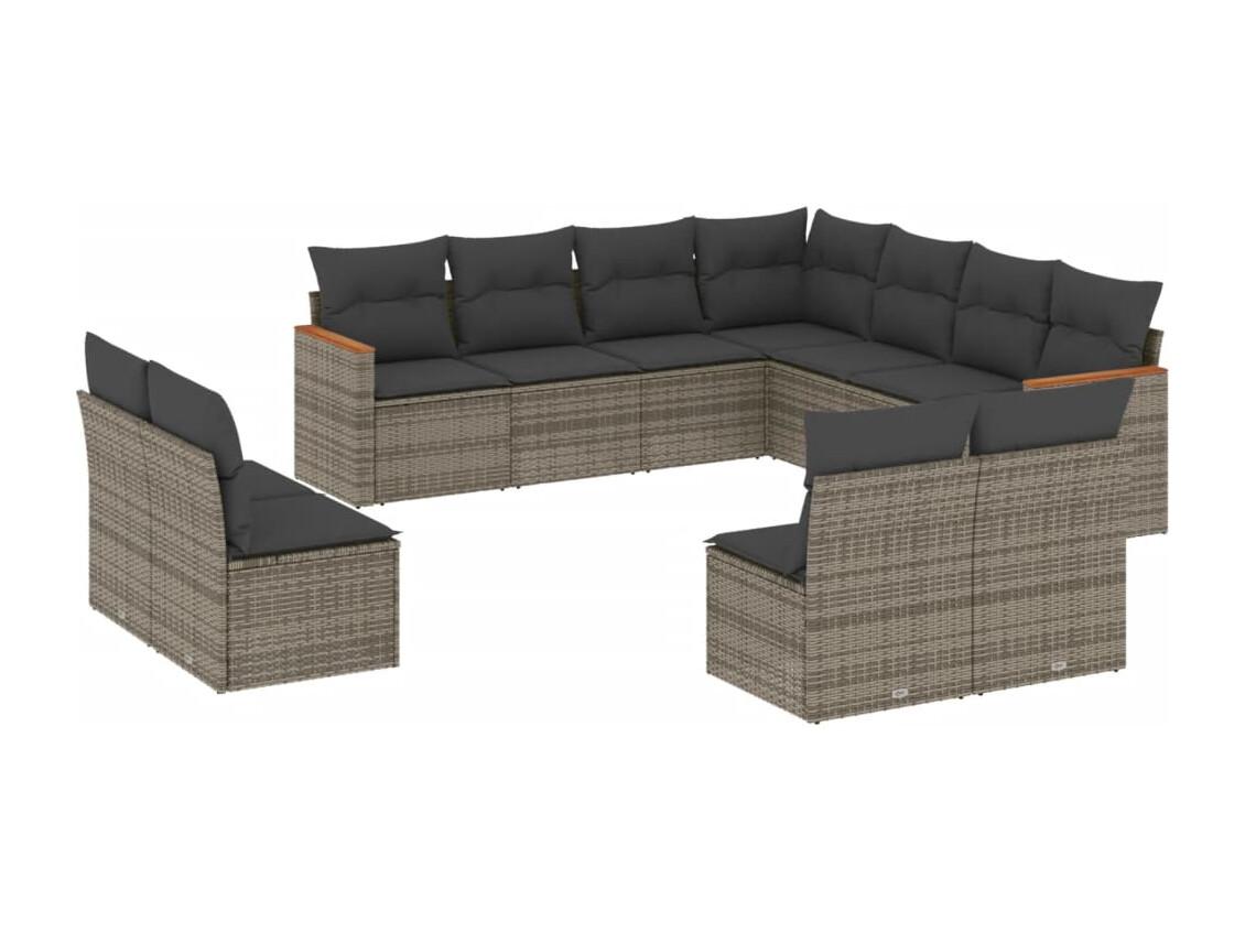 Salon de jardin 11 pièces avec coussins gris résine tressée