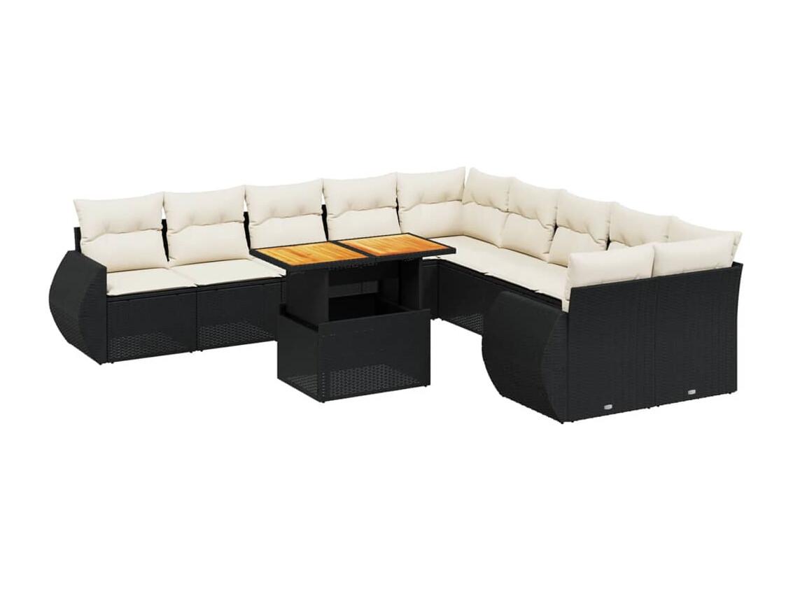 Salon de jardin 11 pièces avec coussins noir résine tressée