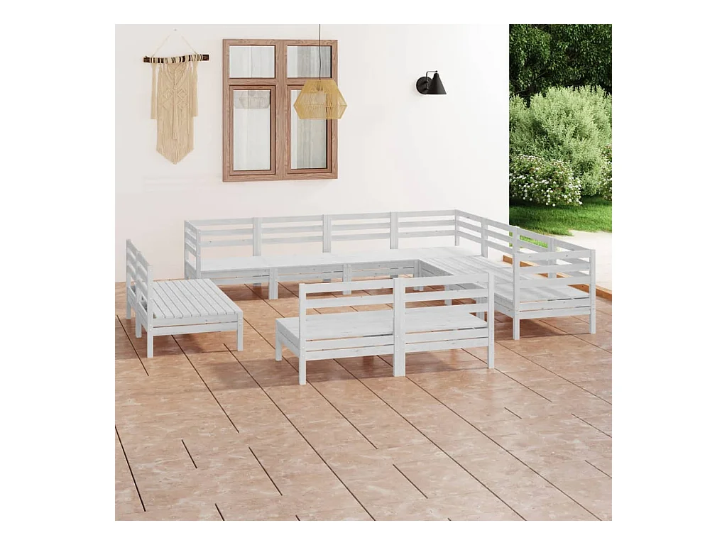 Salon de jardin 12 pièces Blanc Bois de pin massif