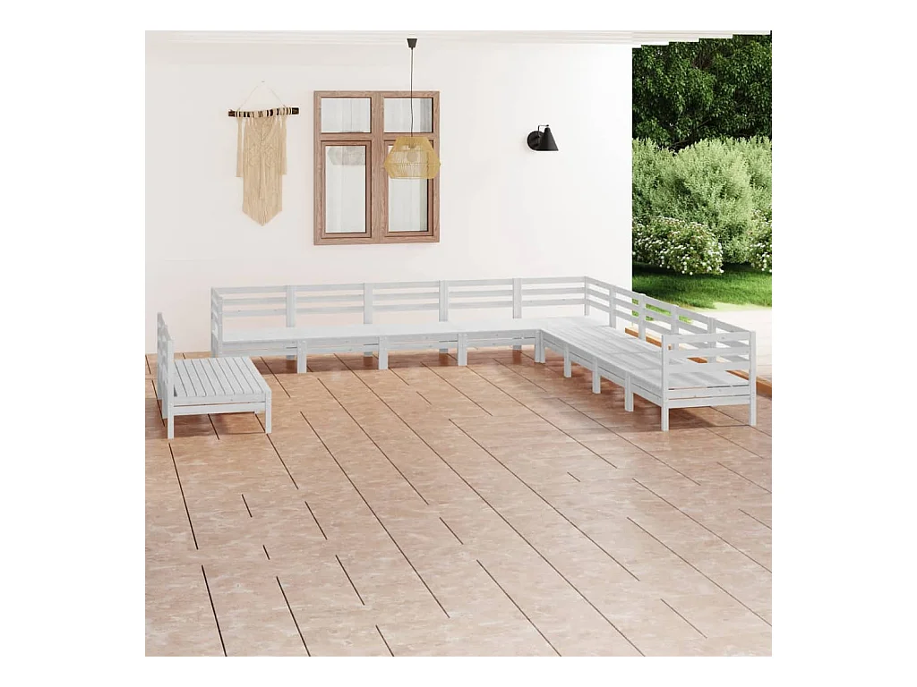 Salon de jardin 10 pièces Blanc Bois de pin massif
