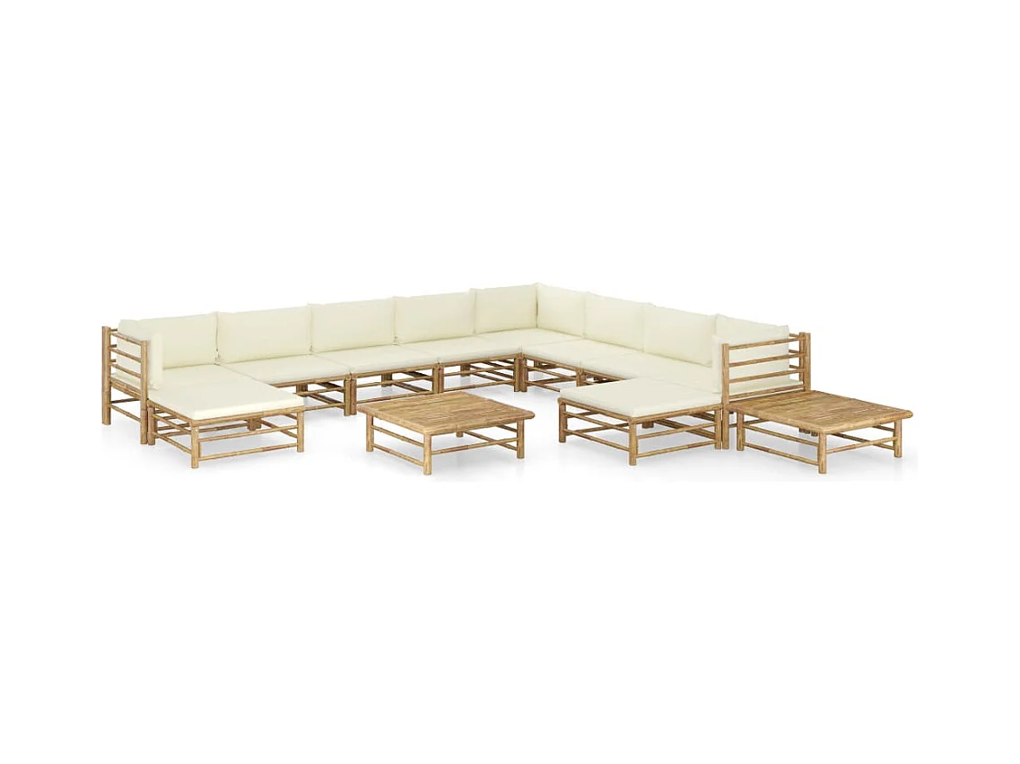 Salon de jardin 12 pcs avec coussins blanc crème bambou