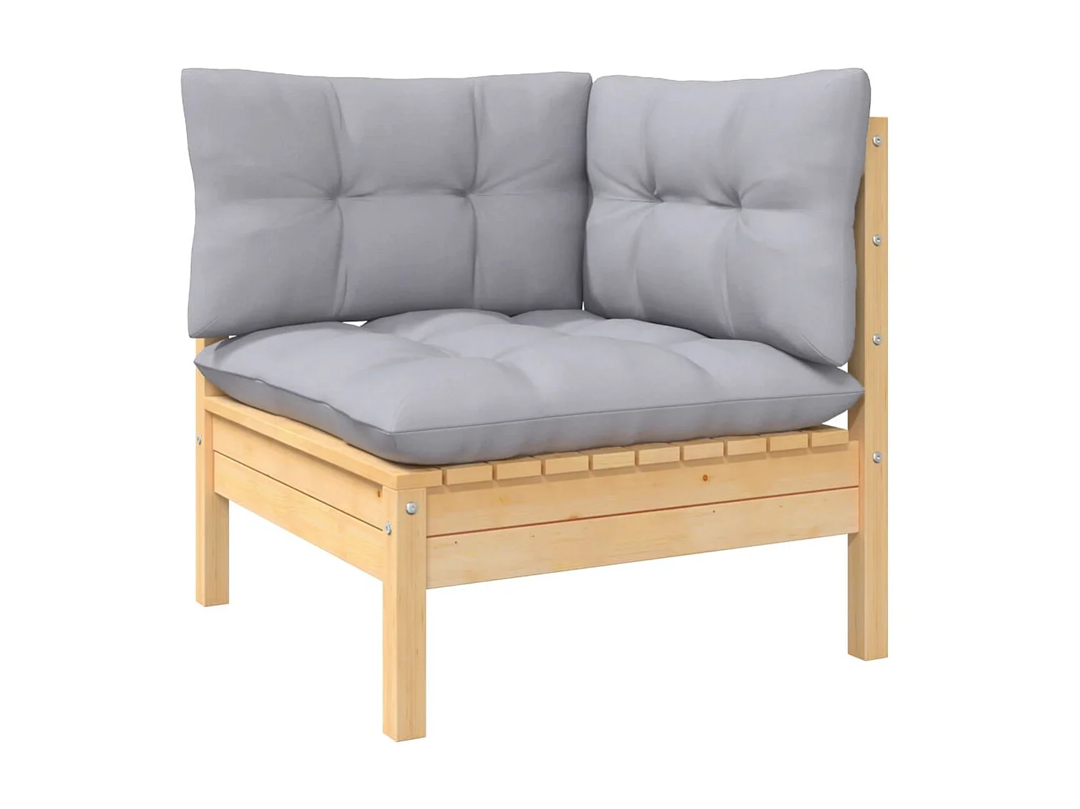 Salon de jardin 12 pcs avec coussins gris Bois de pin massif