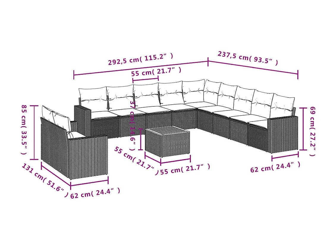 Salon de jardin 12 pcs avec coussins noir résine tressée