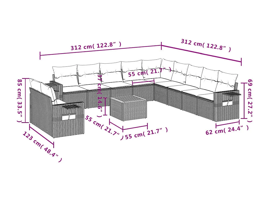 Salon de jardin 12 pcs avec coussins noir résine tressée