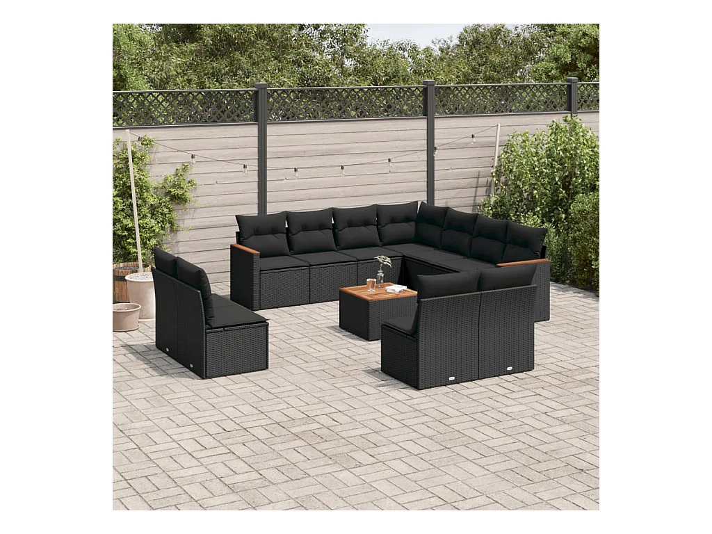 Salon de jardin 12 pcs avec coussins noir résine tressée