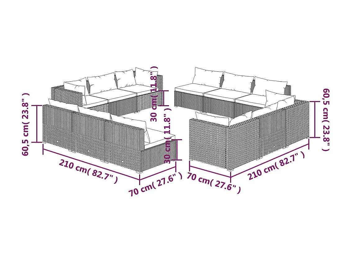 Salon de jardin 12 pcs avec coussins Résine tressée Marron
