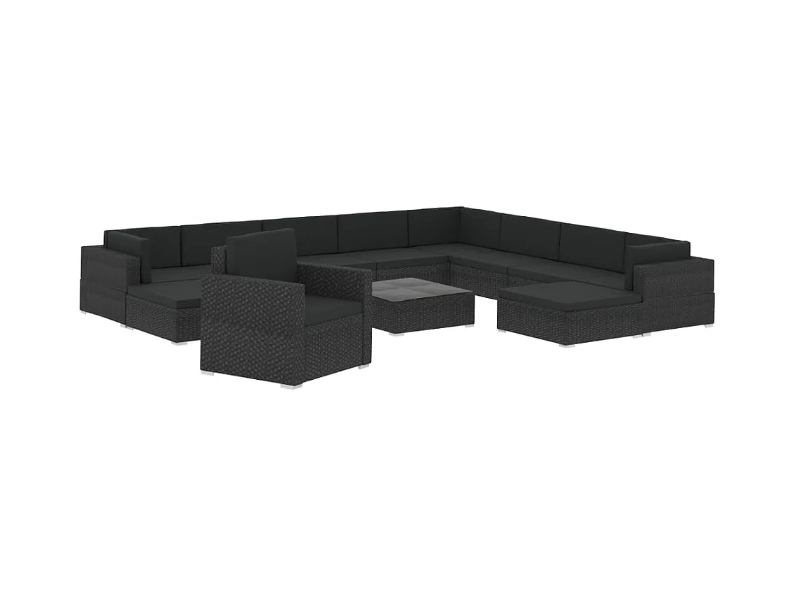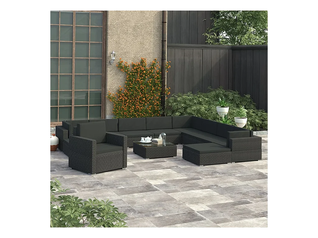 Salon de jardin 12 pcs avec coussins résine tressée noir