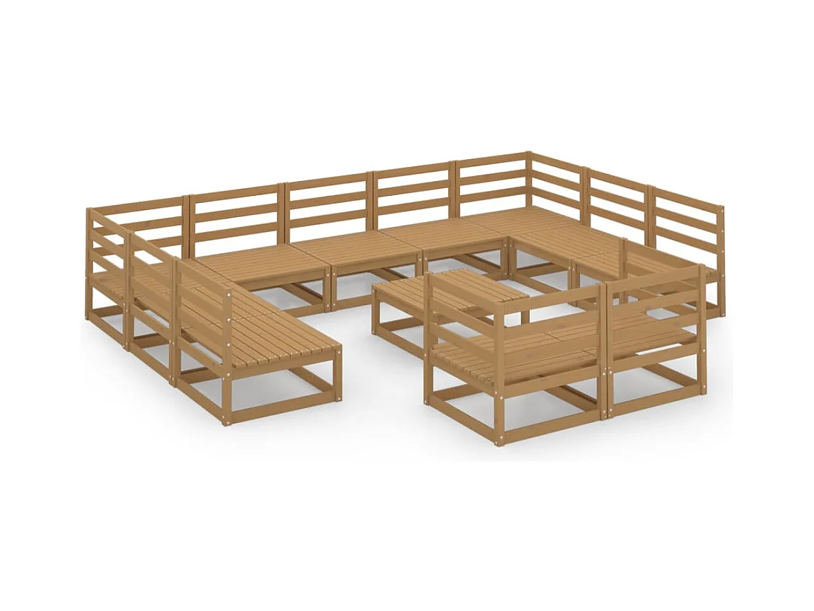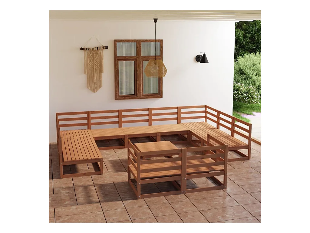 Salon de jardin 12 pcs cire marron bois de pin massif