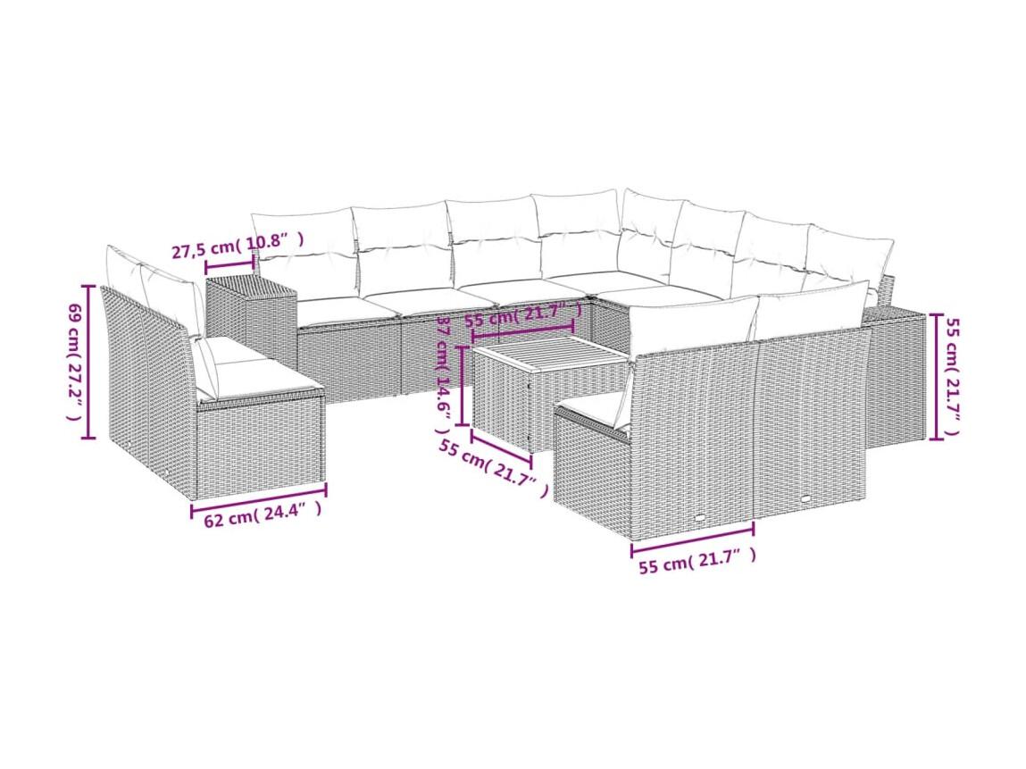 Salon de jardin 12 pièces avec coussins noir résine tressée