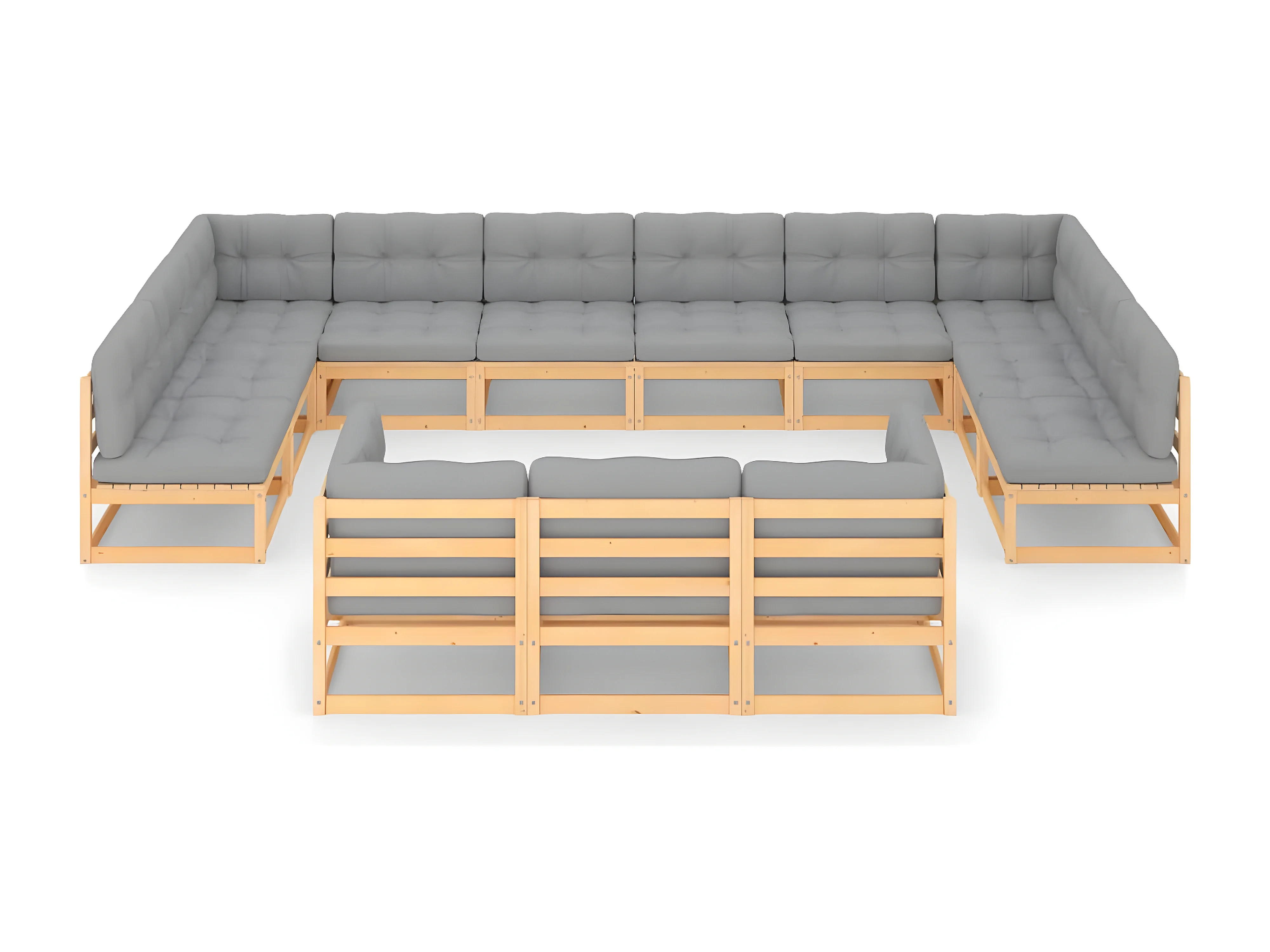 Salon de jardin 13 pcs avec coussins Bois de pin massif 16