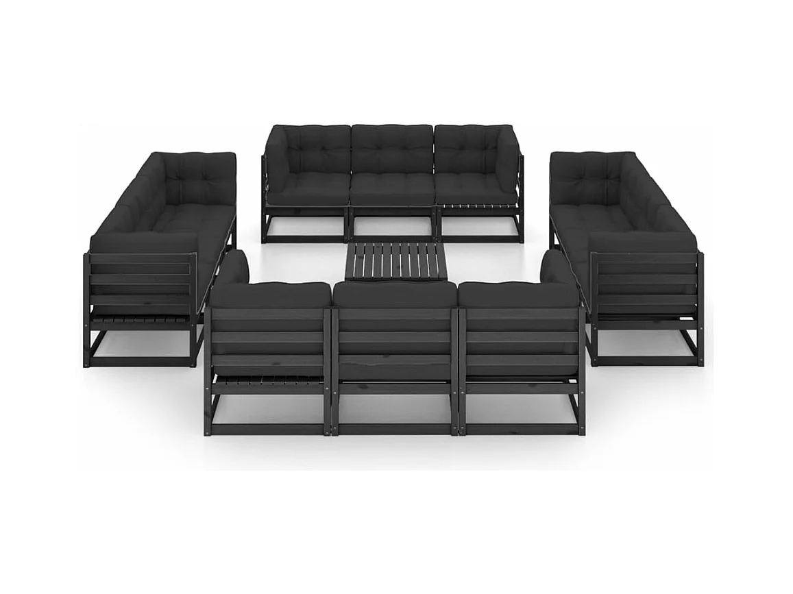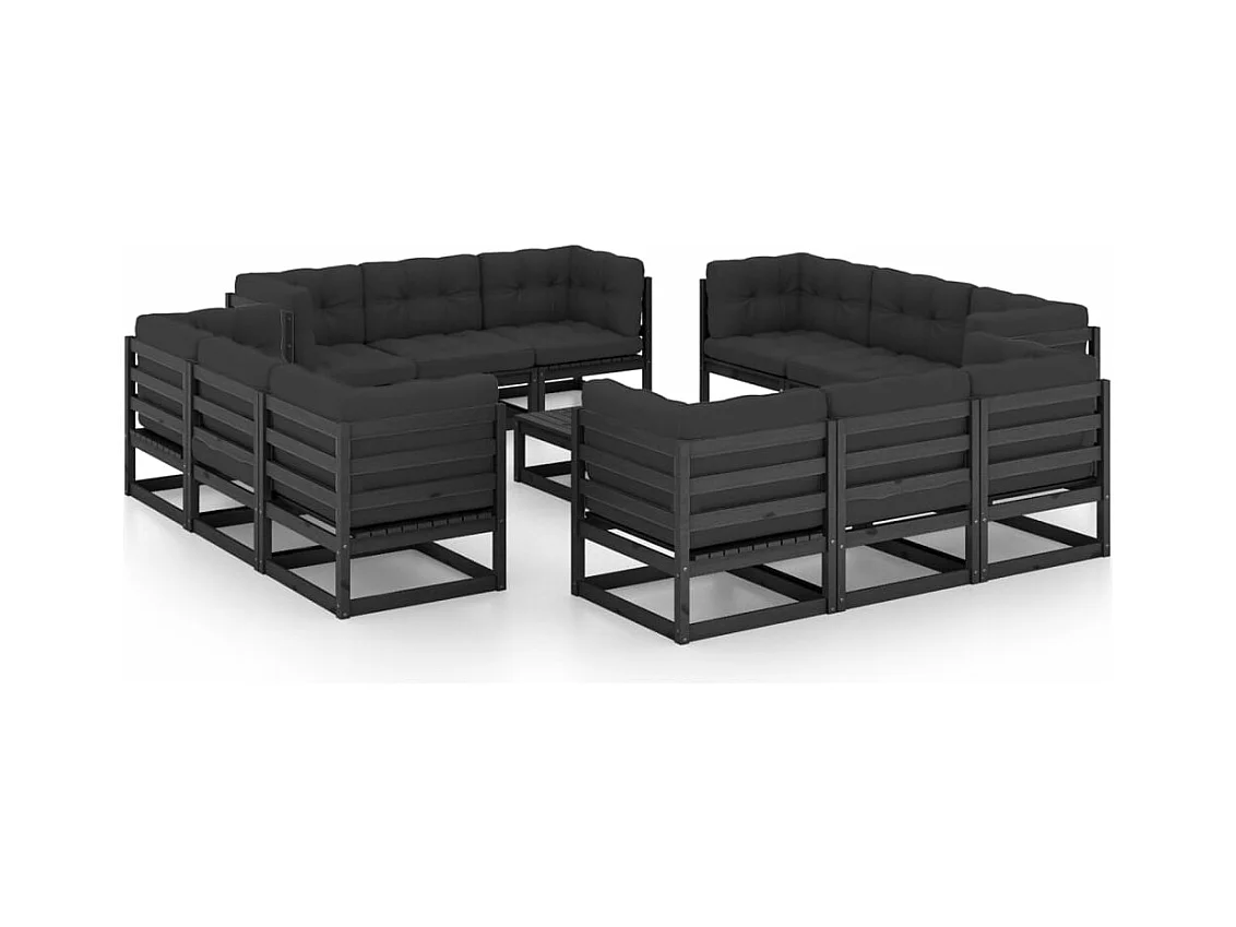Salon de jardin 13 pièces avec coussins Noir Bois de pin massif