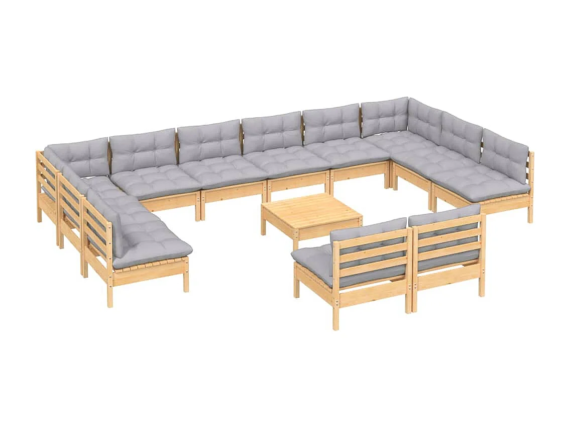 Salon de jardin 13 pièces avec coussins gris bois de pin massif