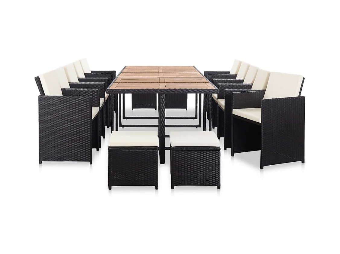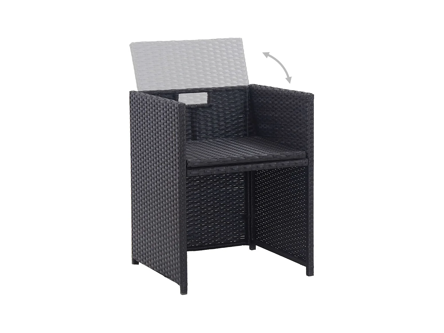 Ensemble à manger d'extérieur 15 pcs avec coussins rotin Noir