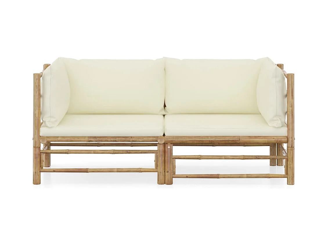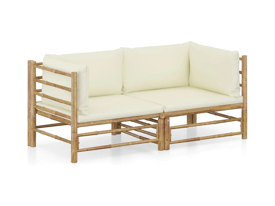 Salon de jardin 2 pcs avec coussins blanc crème Bambou BE51962
