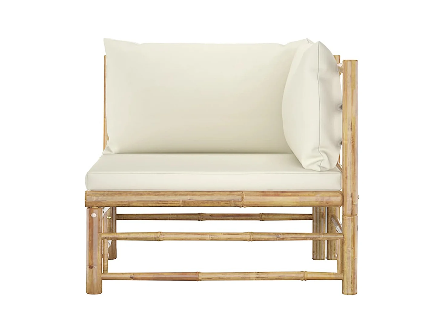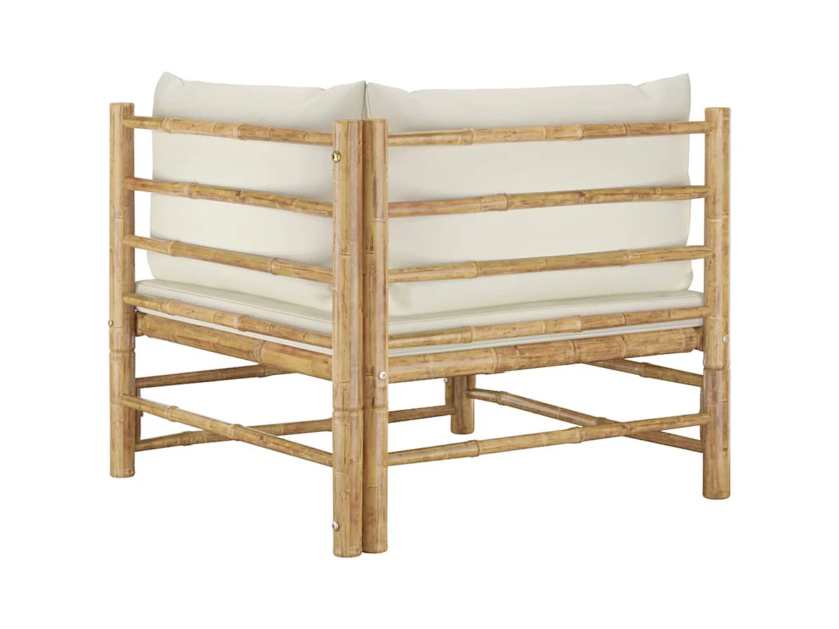 Salon de jardin 3 pcs avec coussins blanc crème Bambou BE98243
