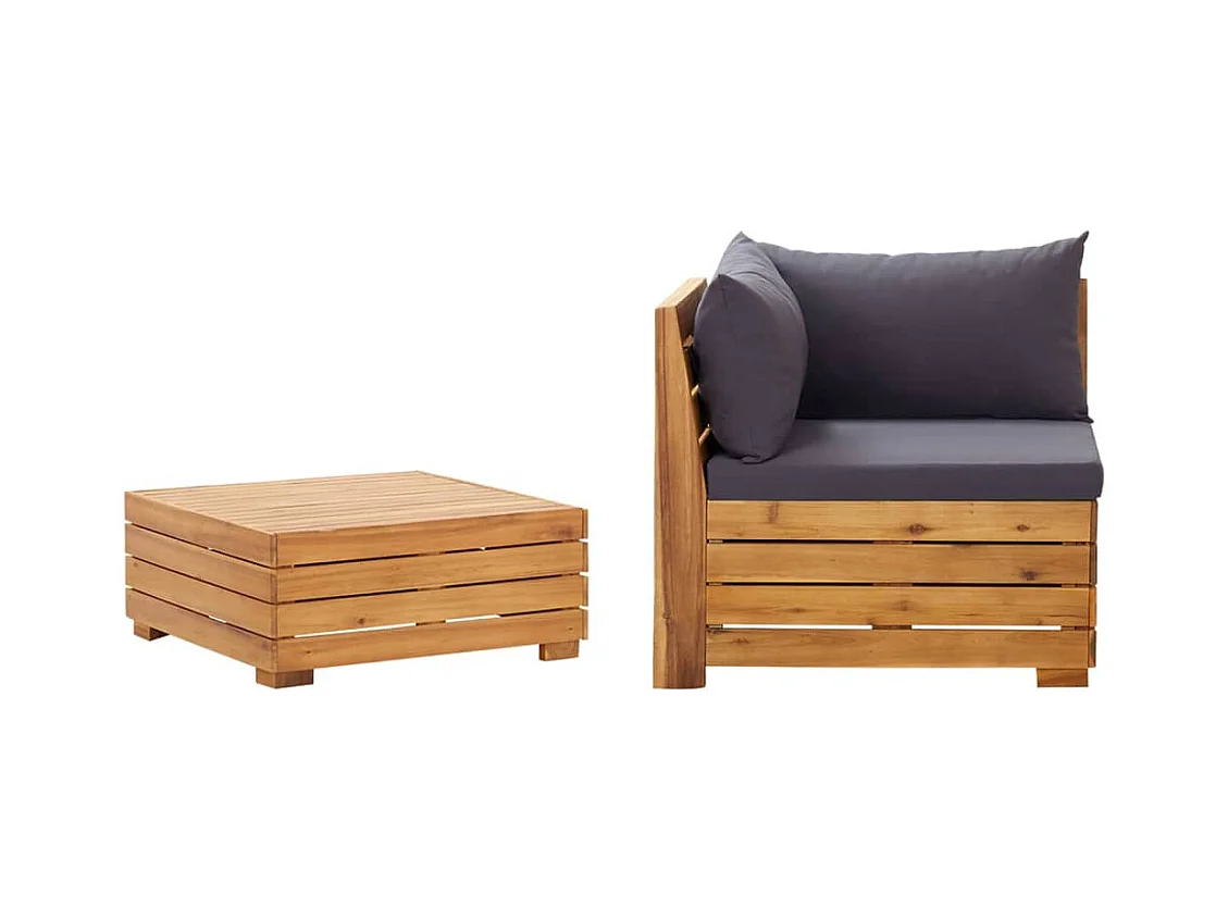 Salon de jardin 2 pcs avec coussins gris foncé Bois d'acacia FR53591