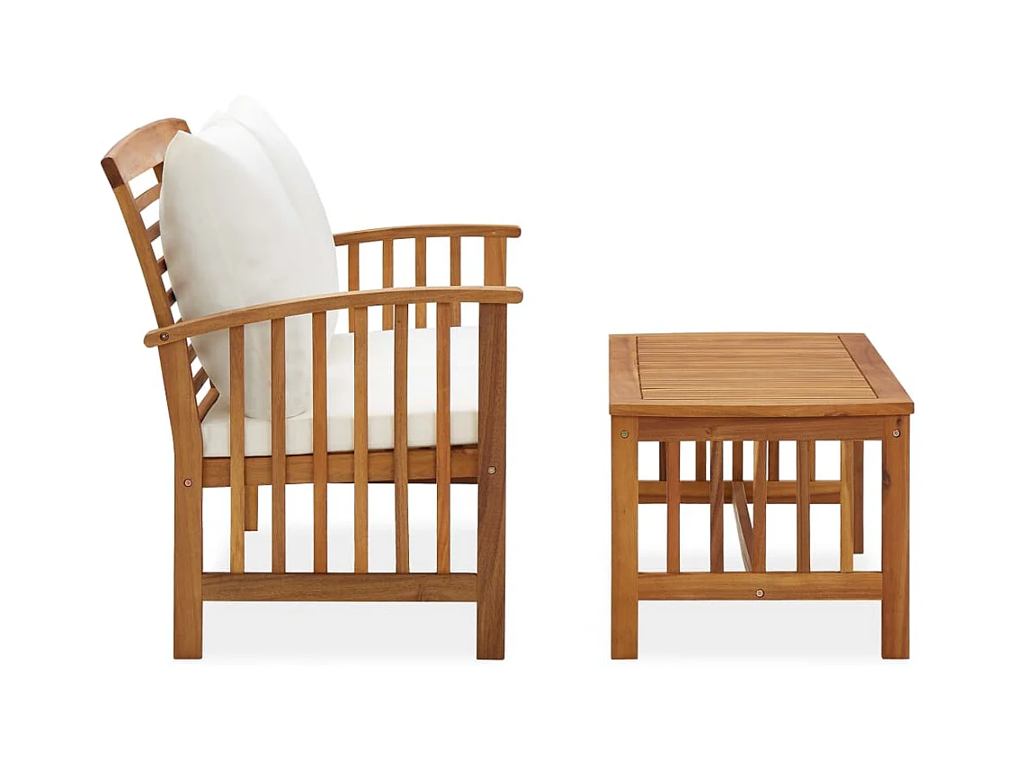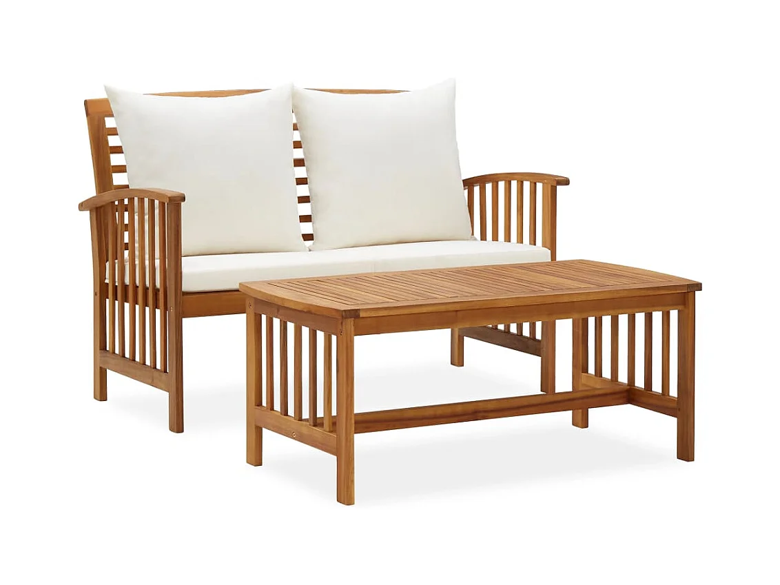 Salon de jardin 2 pcs avec coussins Bois d'acacia solide BE23719