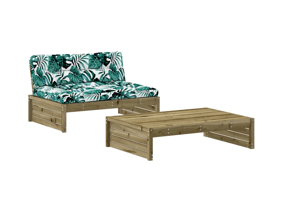 Salon de jardin 2 pcs avec coussins bois de pin imprégné BE59930