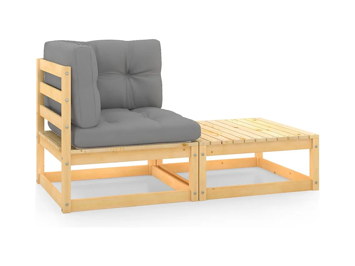 Salon de jardin 2 pcs avec coussins Gris Bois de pin massif FR13144