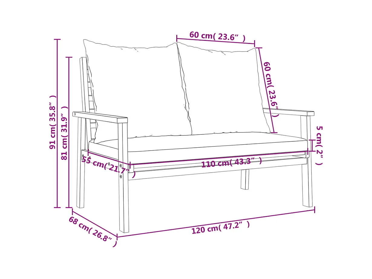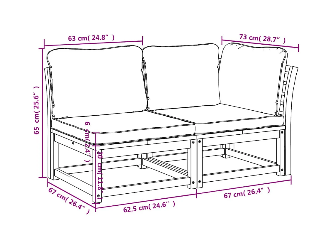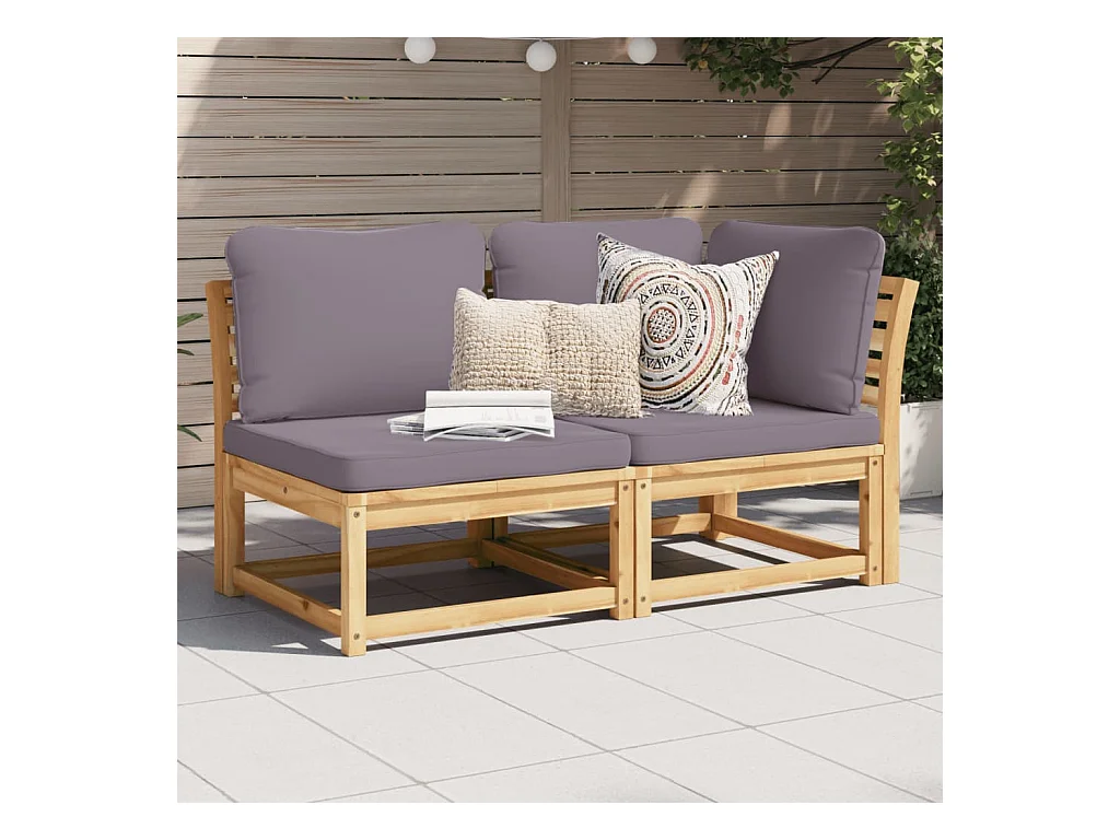 Salon de jardin 2 pcs avec coussins bois massif d'acacia