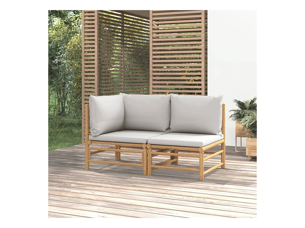 Salon de jardin 2 pcs avec coussins gris clair bambou FR16376