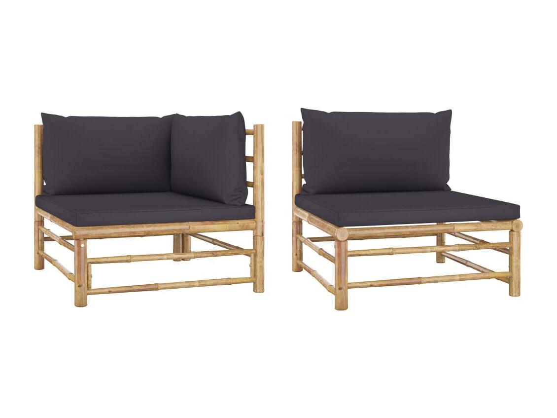 Salon de jardin 2 pcs avec coussins gris foncé Bambou FR84552