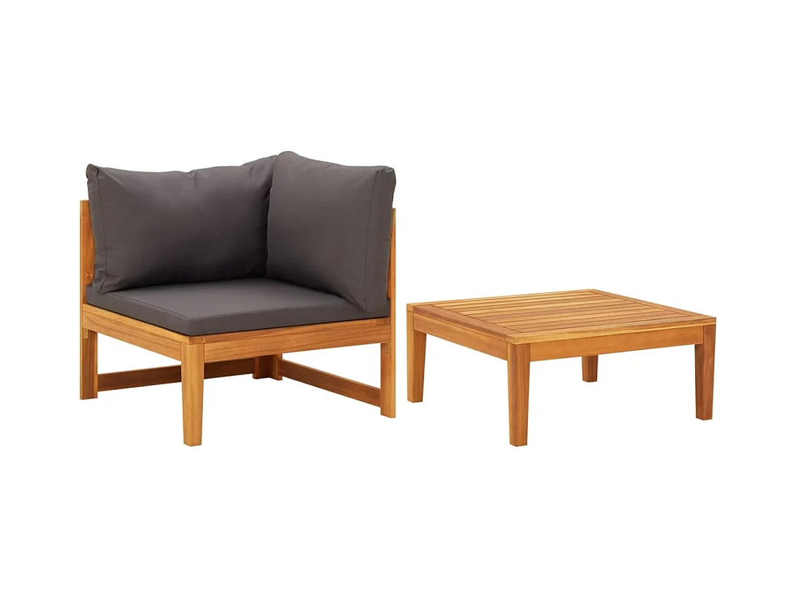 Salon de jardin 2 pcs avec coussins gris foncé Bois d'acacia FR35032