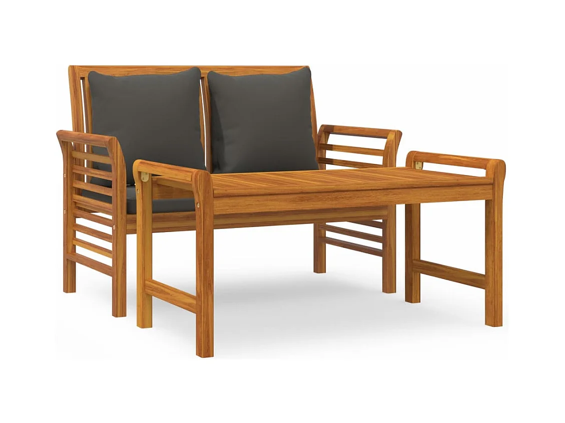 Chaises de jardin avec table à thé et coussins Acacia solide