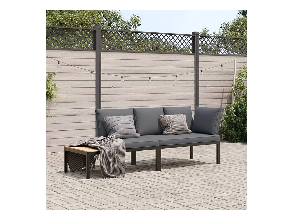 Salon de jardin 3 pcs avec coussins noir aluminium