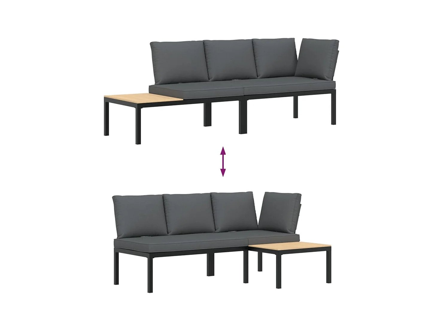 Salon de jardin 4 pcs avec coussins noir aluminium