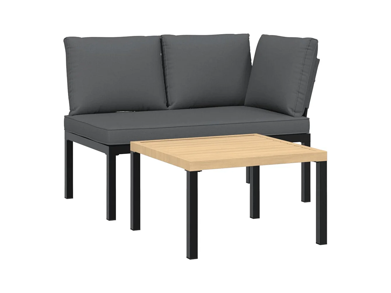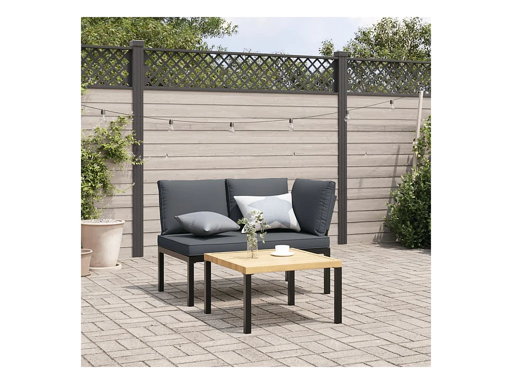 Salon de jardin 2 pcs avec coussins noir aluminium FR61341