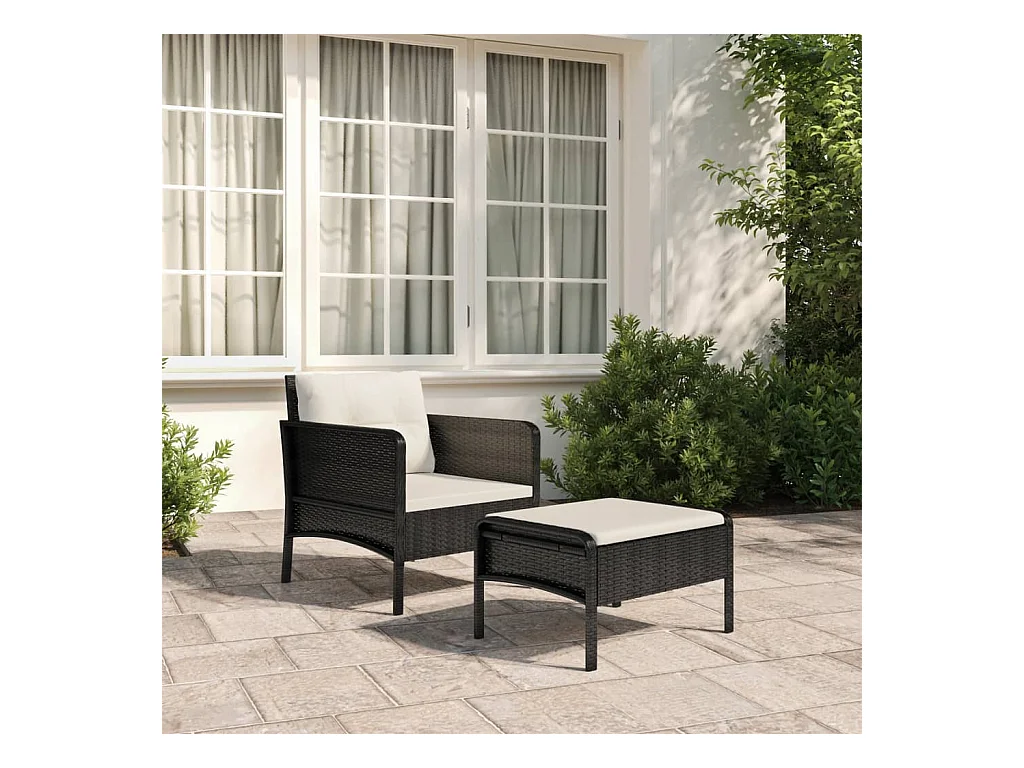 Salon de jardin 2 pcs avec coussins Noir Résine tressée BE72840