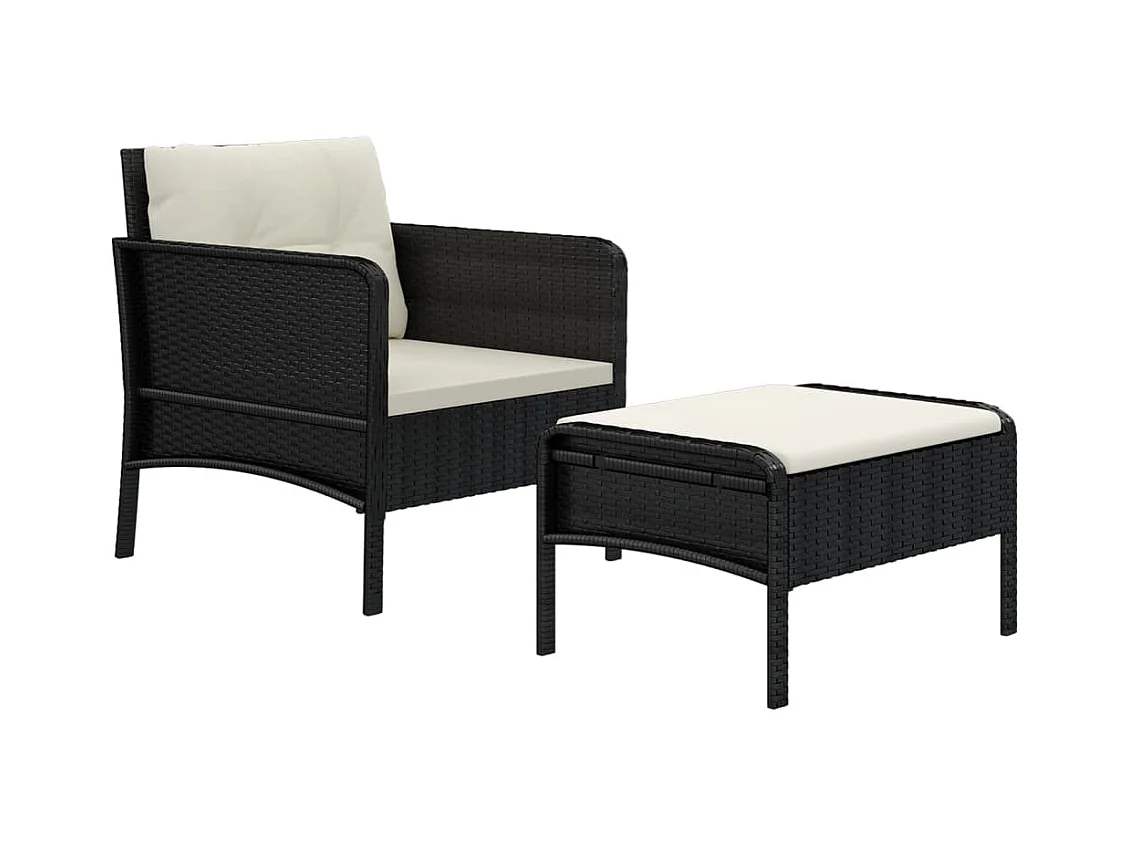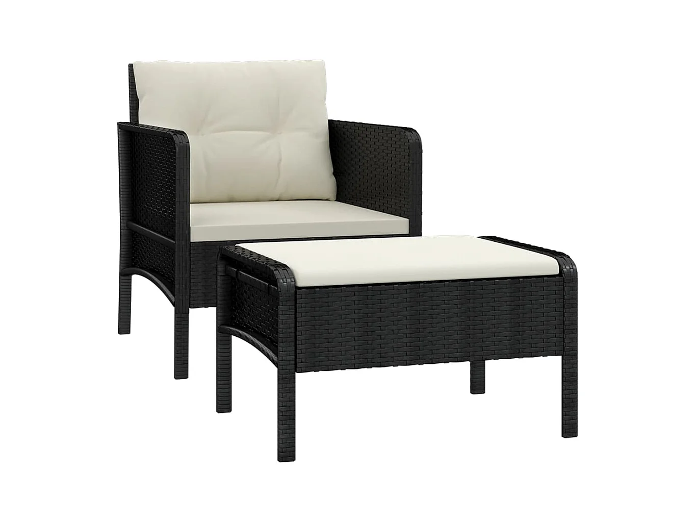 Salon de jardin 2 pcs avec coussins Noir Résine tressée BE51649