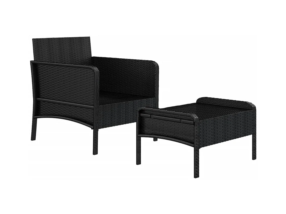 Salon de jardin 3 pcs avec coussins noir résine tressée FR19799