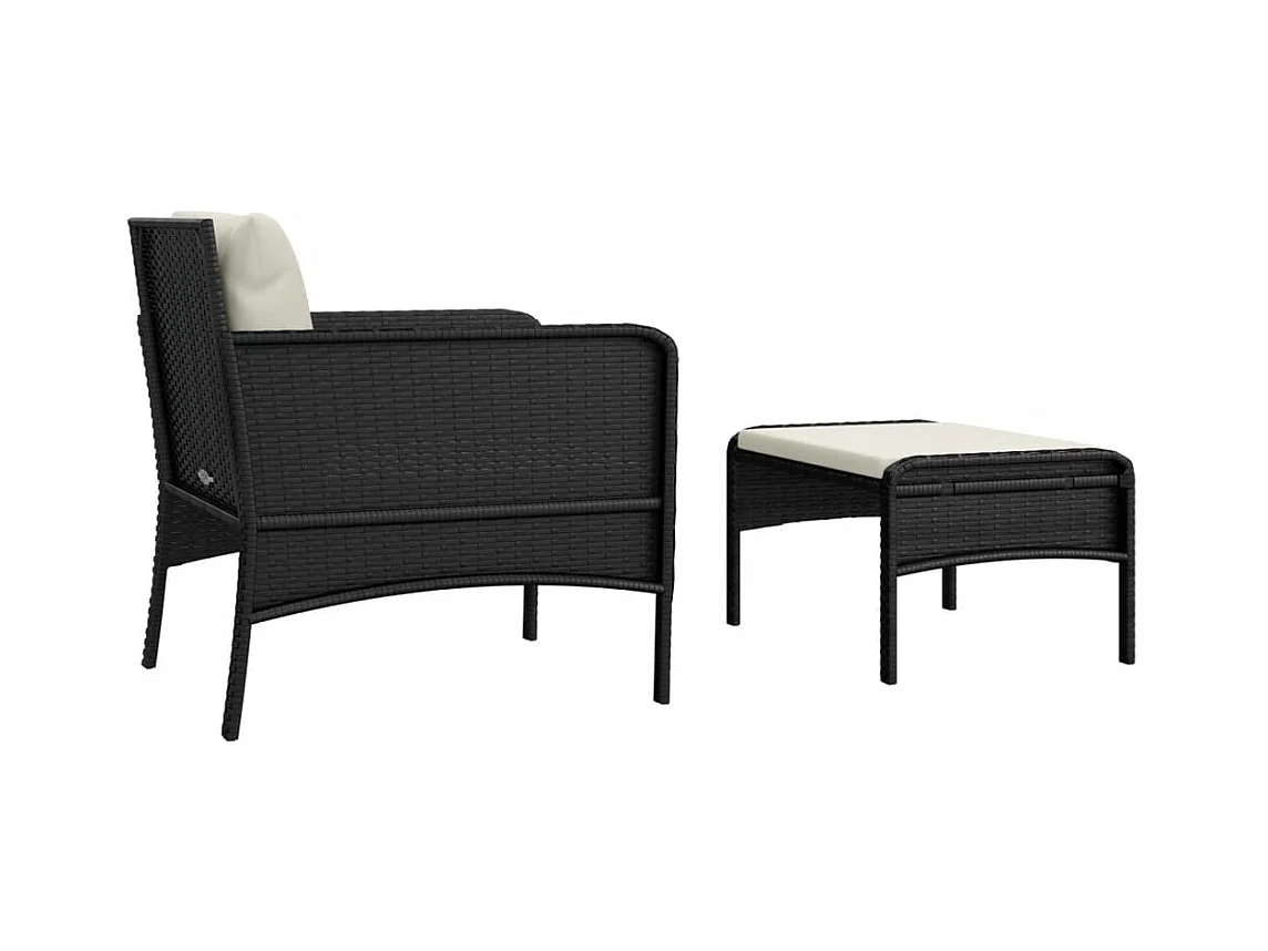 Salon de jardin 3 pcs avec coussins noir résine tressée FR74587