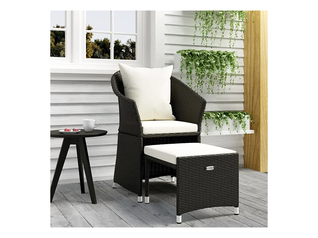 Salon de jardin 2 pièces avec coussins Résine tressée Noir