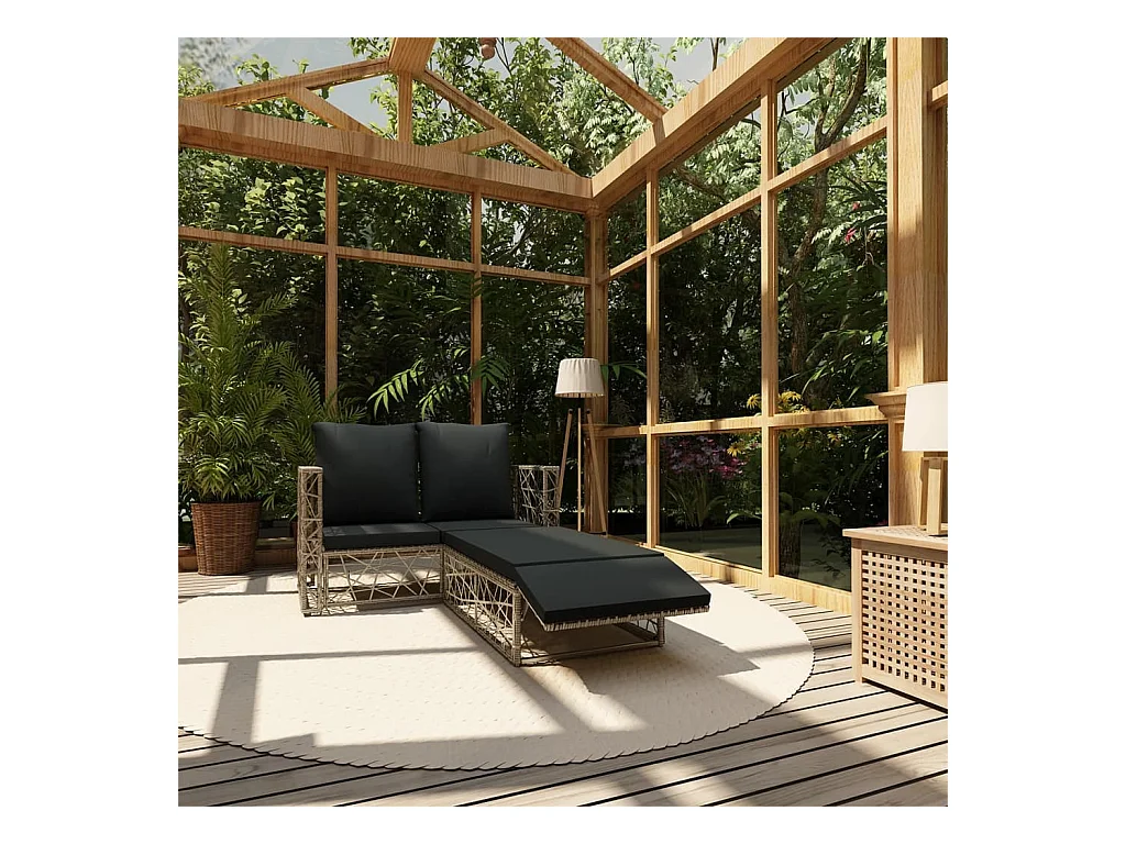 Salon de jardin avec coussins 3 pcs gris résine tressée FR10672