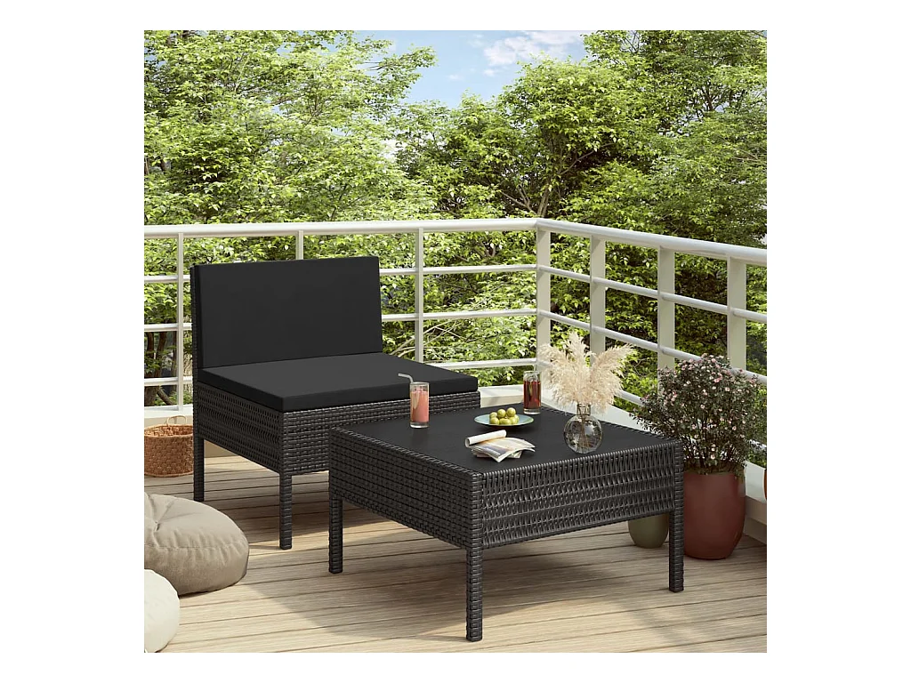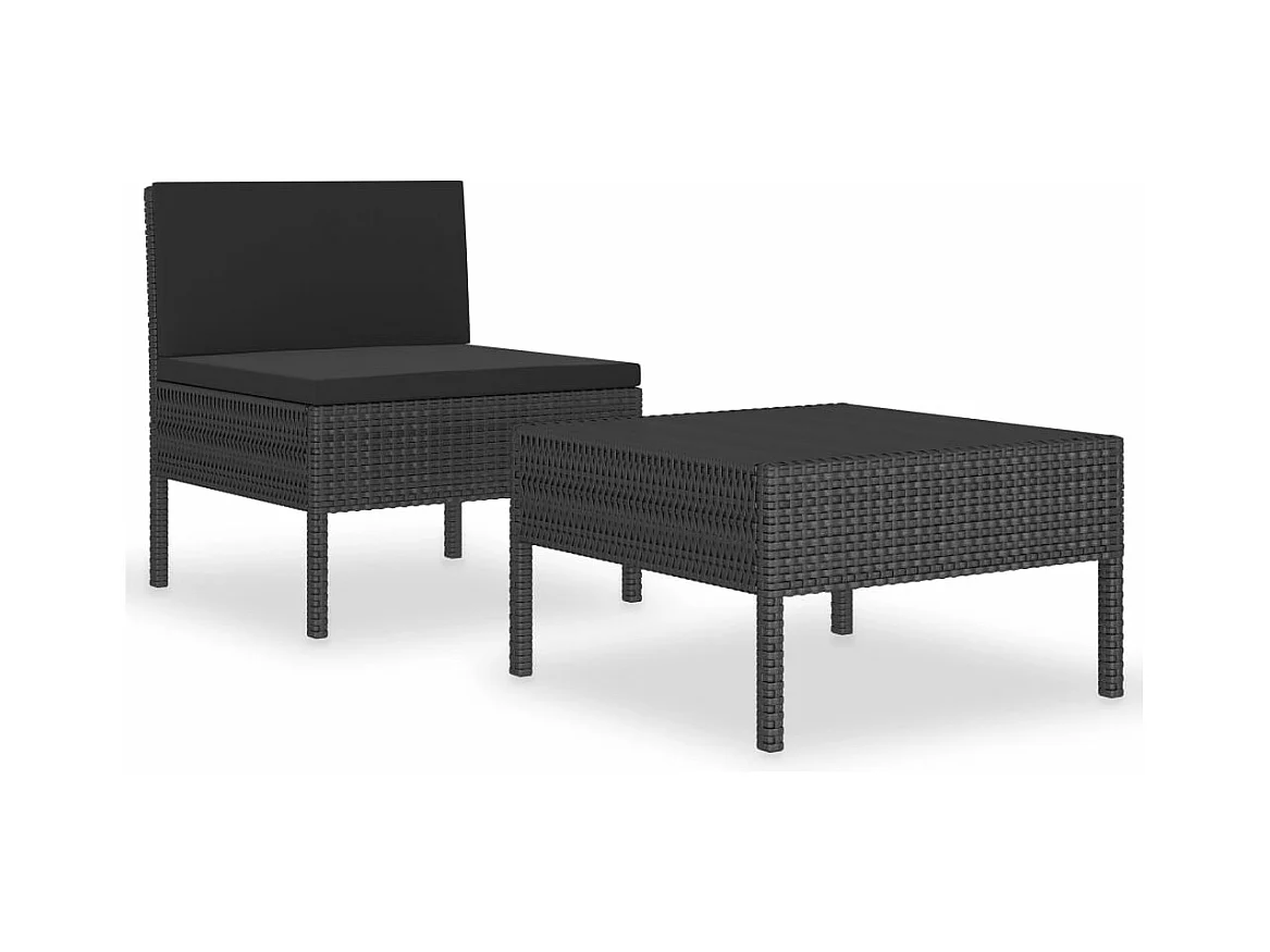 Salon de jardin 2 pcs avec coussins Résine tressée Noir BE33791