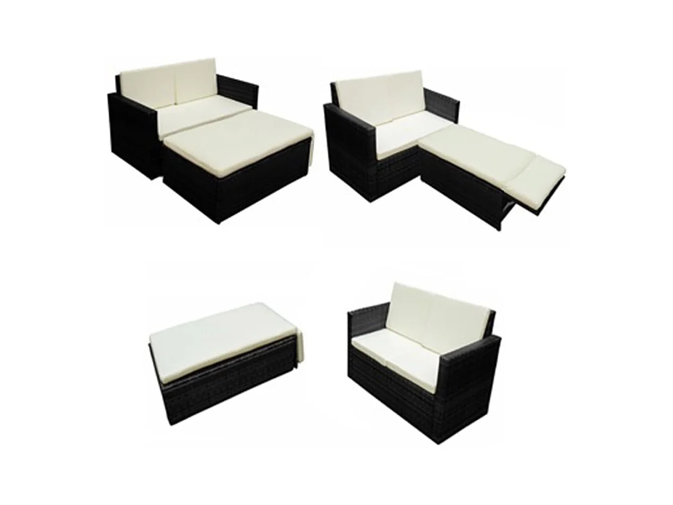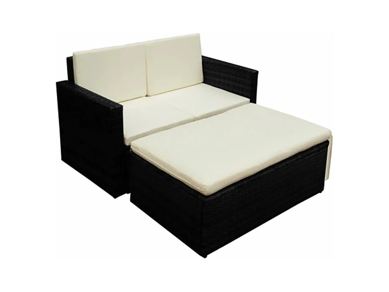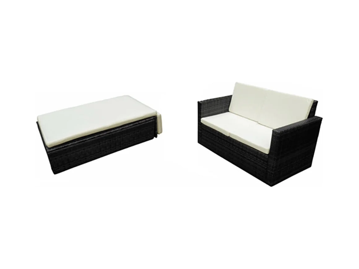 Salon de jardin 2 pièces avec coussins Résine tressée Noir