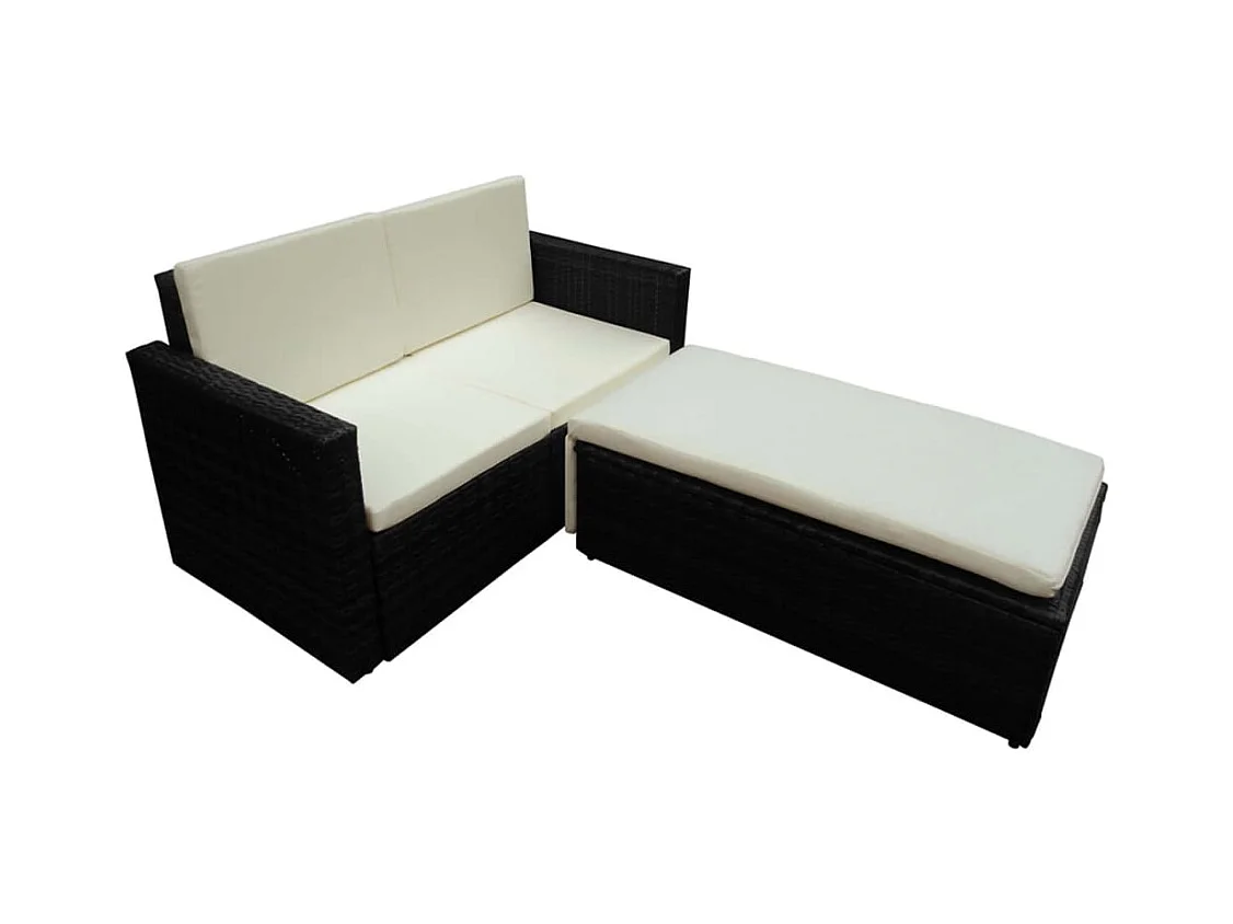 Salon de jardin 3 pièces avec coussins Résine tressée Noir