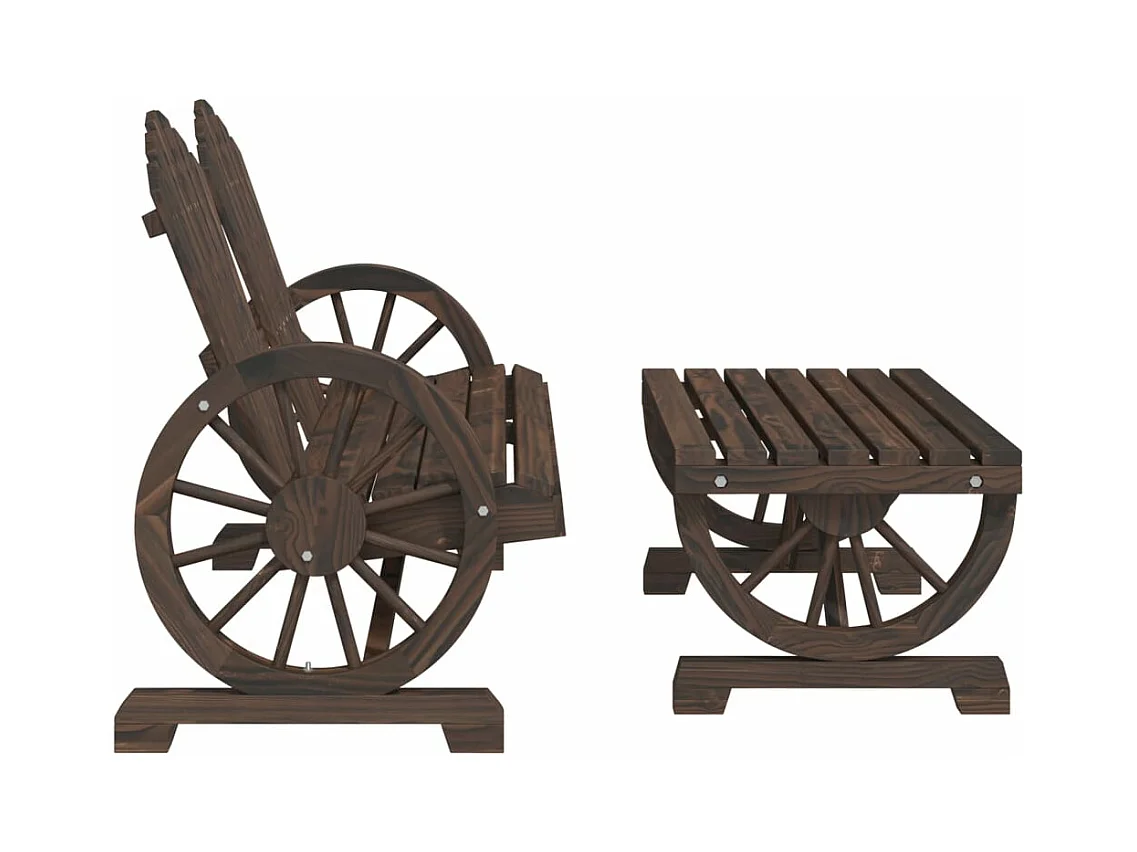 Salon de jardin 8 pcs avec coussins marron cire bois pin massif