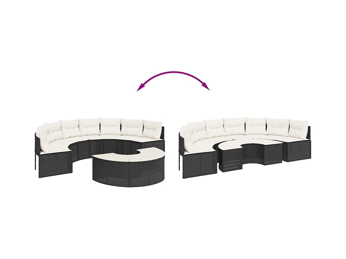 Salon de jardin 3 pcs demi-rond noir résine tressée