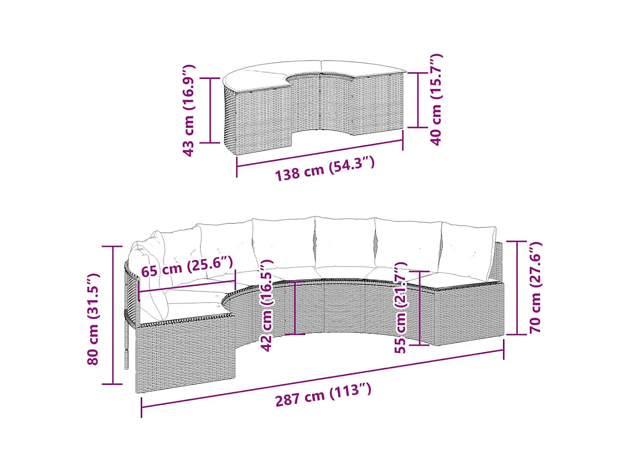 Salon de jardin 2 pcs demi-rond noir résine tressée