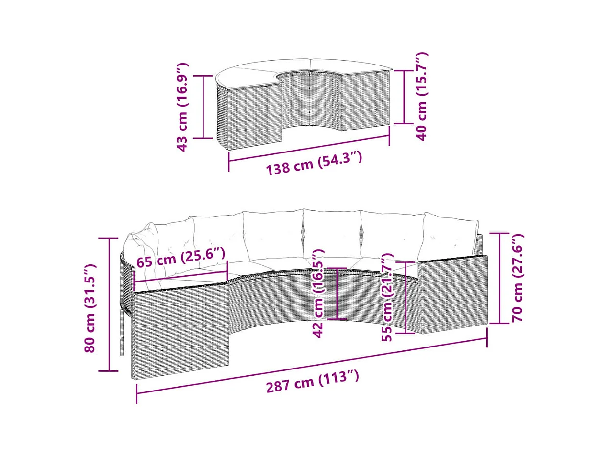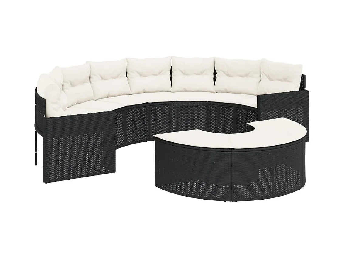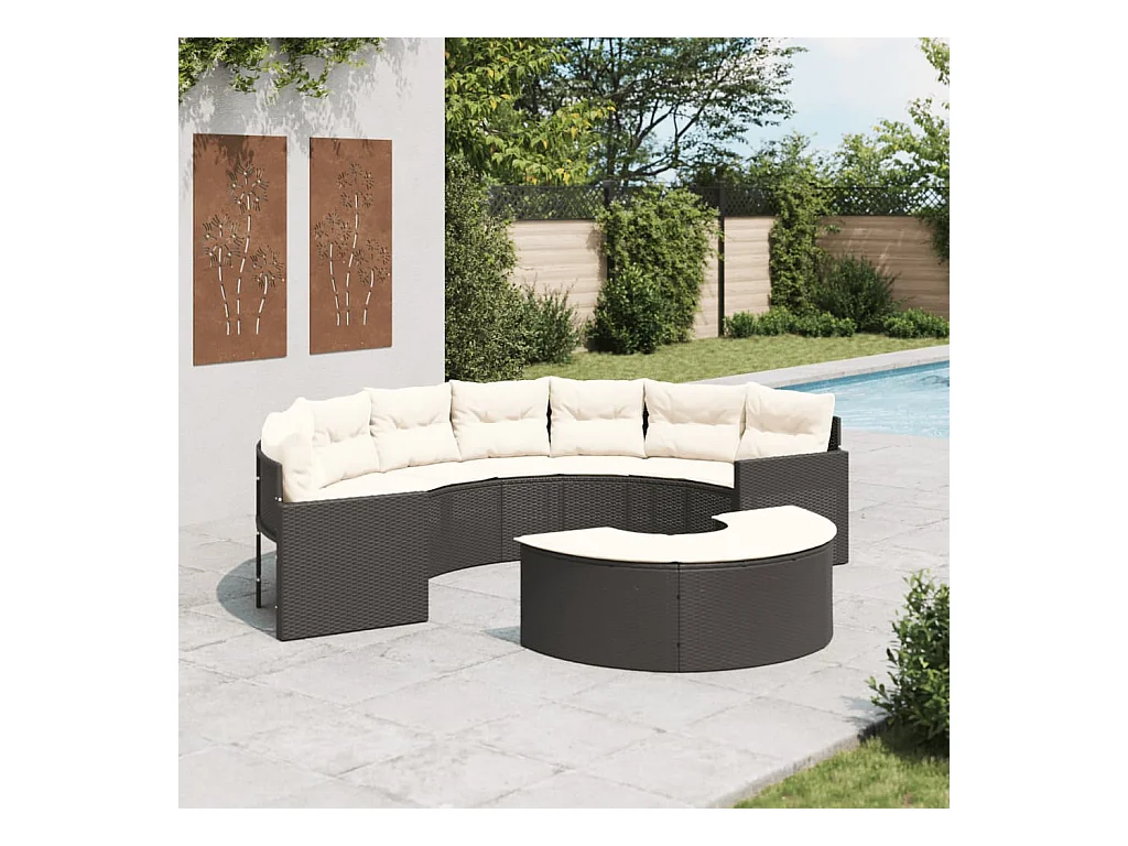 Salon de jardin 2 pcs demi-rond noir résine tressée