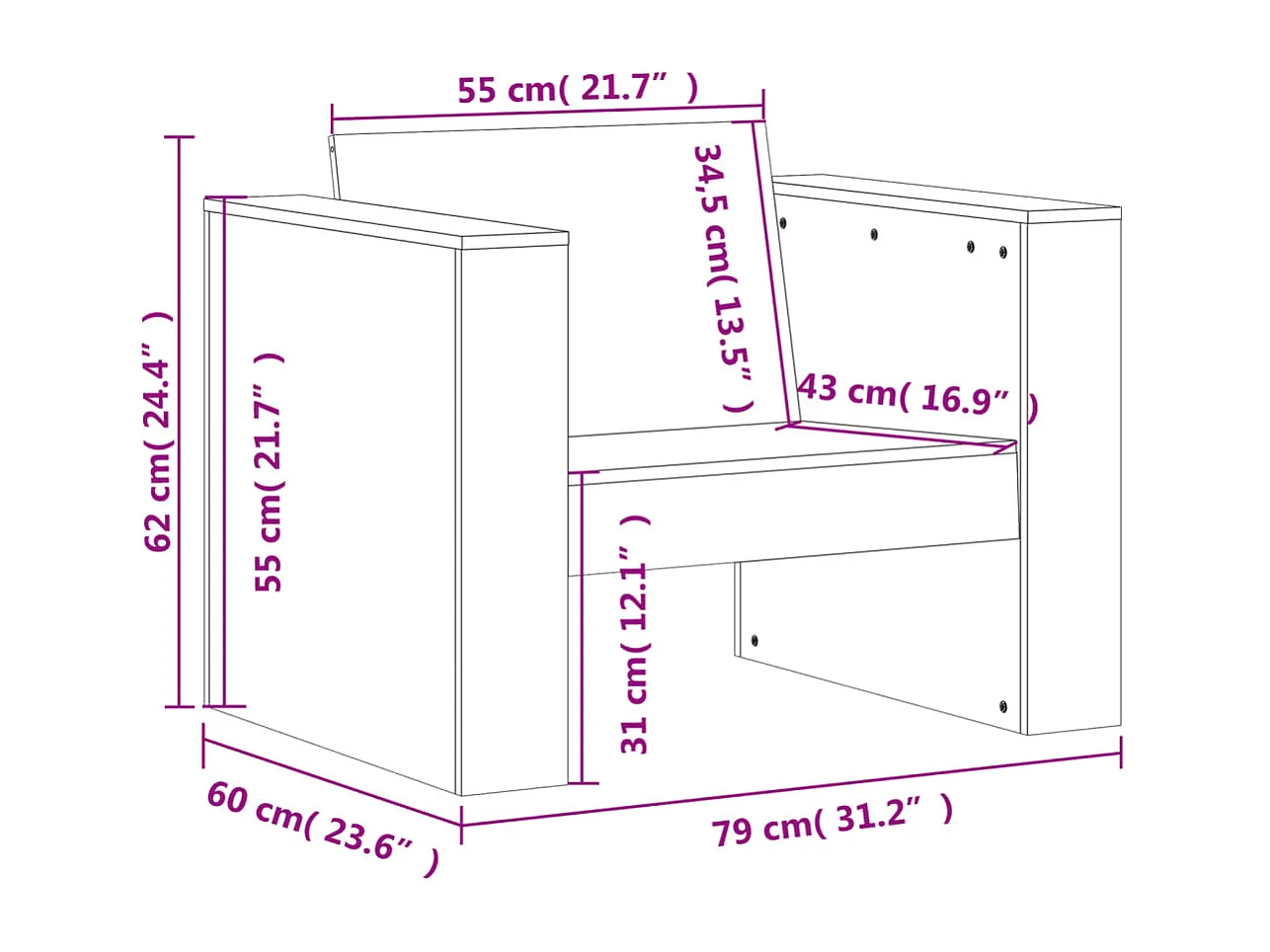 Salon de jardin 2 pcs marron bois de pin massif