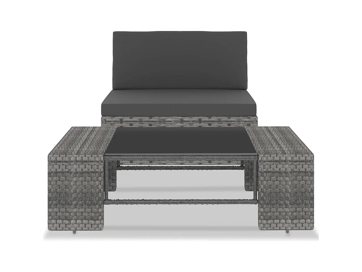 Salon de jardin 3 pcs Résine tressée Gris FR80940