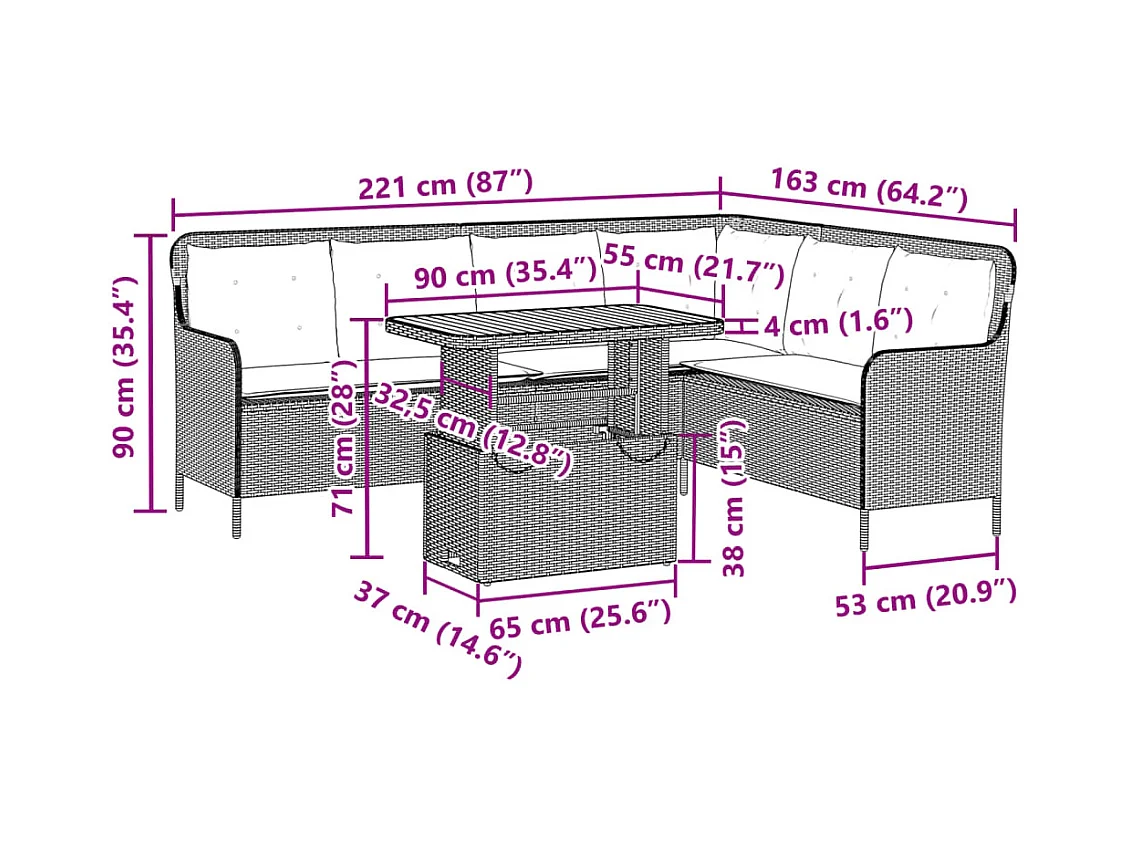 Salon de jardin 6 pièces avec coussins Gris Résine tressée