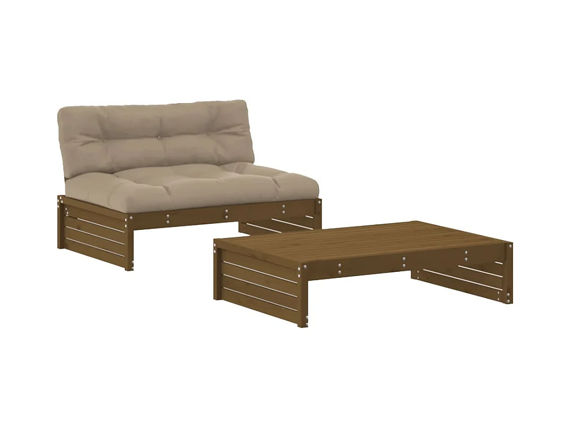 Salon de jardin 2 pièces avec coussins marron miel bois massif